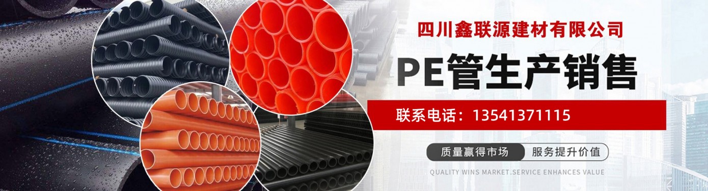 四川鑫联源建材有限公司产品规格齐全,PE给水管型号20mm-800mm.PE钢丝网骨架复合管50mm-6300mm.PE钢骨架复合管.PE 钢带增强螺旋波纹管规格从300mm-3000mm,HDPE埋地排污用双壁波纹管规格从110mm-800mm,PVC-U埋地排污用双壁波纹管规格从110mm-600mm,碳素螺纹管40mm-200mm, PVC-U、多孔管分别有一、三、四、五、七、九孔系列......